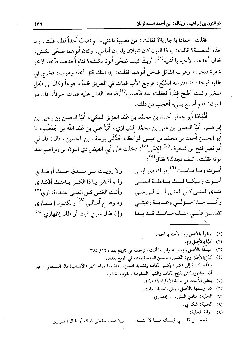 (5) بعض الابيات في حلية الاولياء 9 / 390