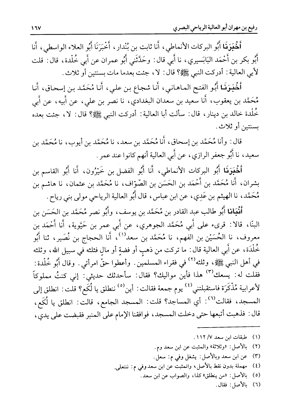 (1) طبقات ابن سعد 7 / 112