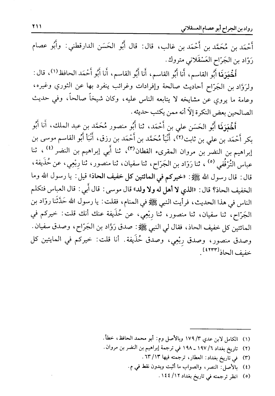 (5) انظر ترجمته في تاريخ بغداد 12 / 144