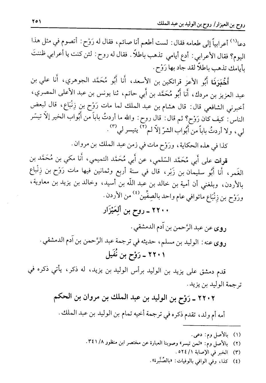 2201 - روح بن نفيل قدم دمشق على يزيد بن الوليد برأس الوليد بن يزيد له ذكر يأتي ذكره في ترجمة الوليد بن يزيد