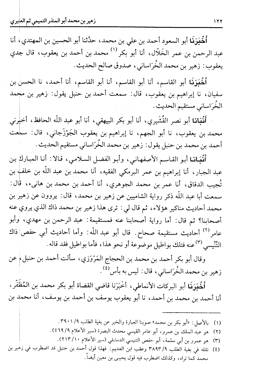 (4) نقله في بغية الطلب 9 / 3893 وعقب ابن العديم: فهذا قول أحمد بن حنبل قد اضطرب في زهير بن محمد كما تراه وكذلك اضطرب فيه قول يحيى بن معين أيضا