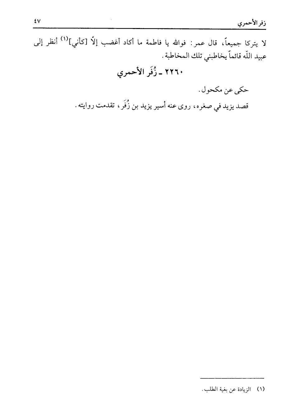 2260 - زفر الأحمري حكى عن مكحول قصد يزيد في صغره روى عنه أسير يزيد بن زفر تقدمت روايته