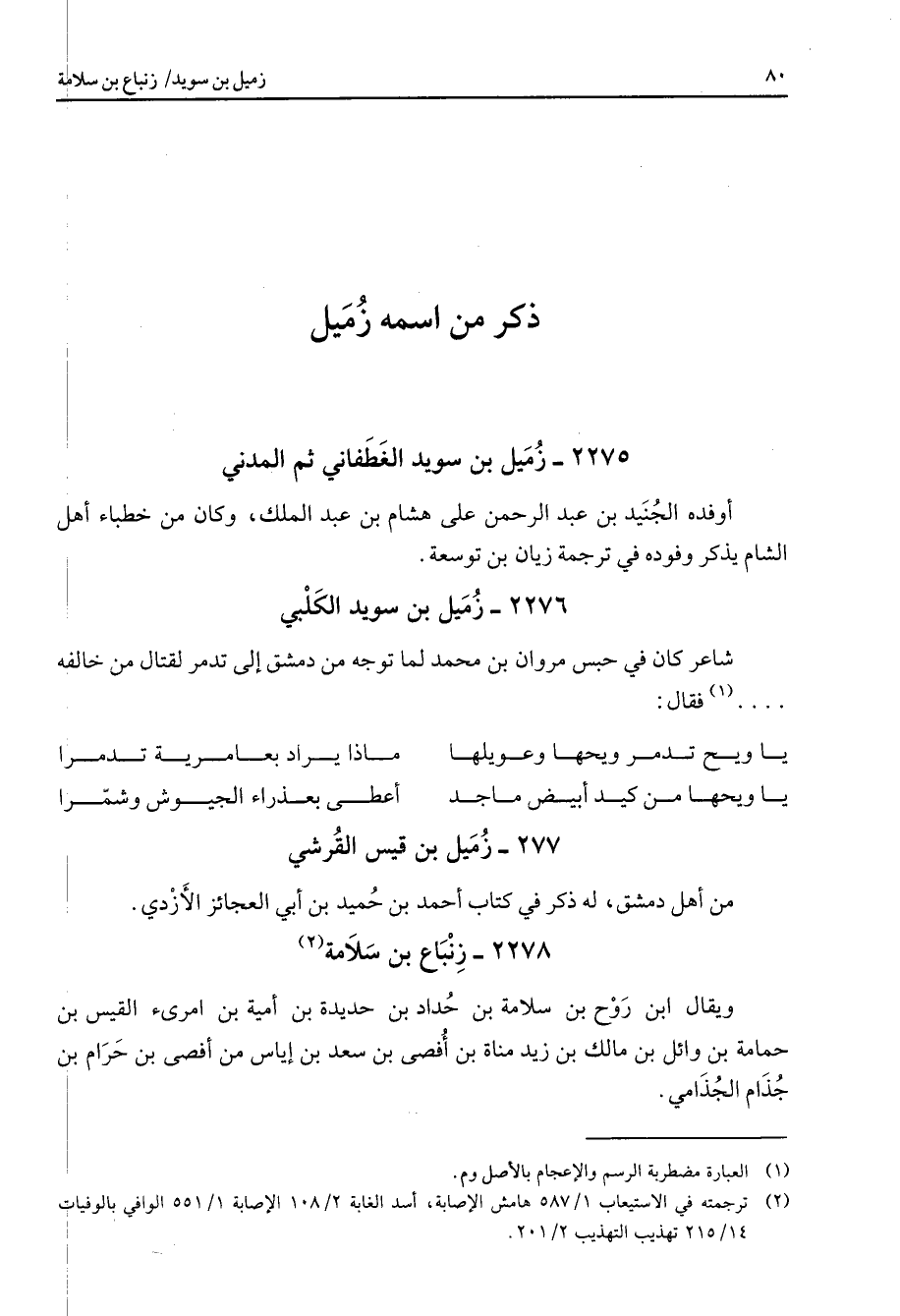 2275 - زميل بن سويد الغطفاني ثم المدني أوفده الجنيد بن عبد الرحمن على هشام بن عبد الملك وكان من خطباء أهل الشام يذكر وفوده في ترجمة زيان بن توسعة