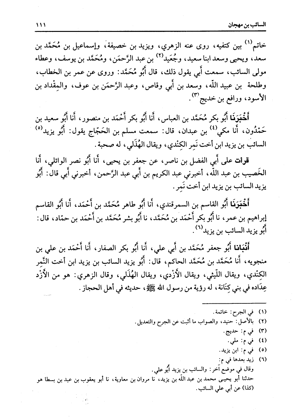 (6) زيد بعدها في م: وقال في موضع ت خر: والسائب بن يزيد أبو علي