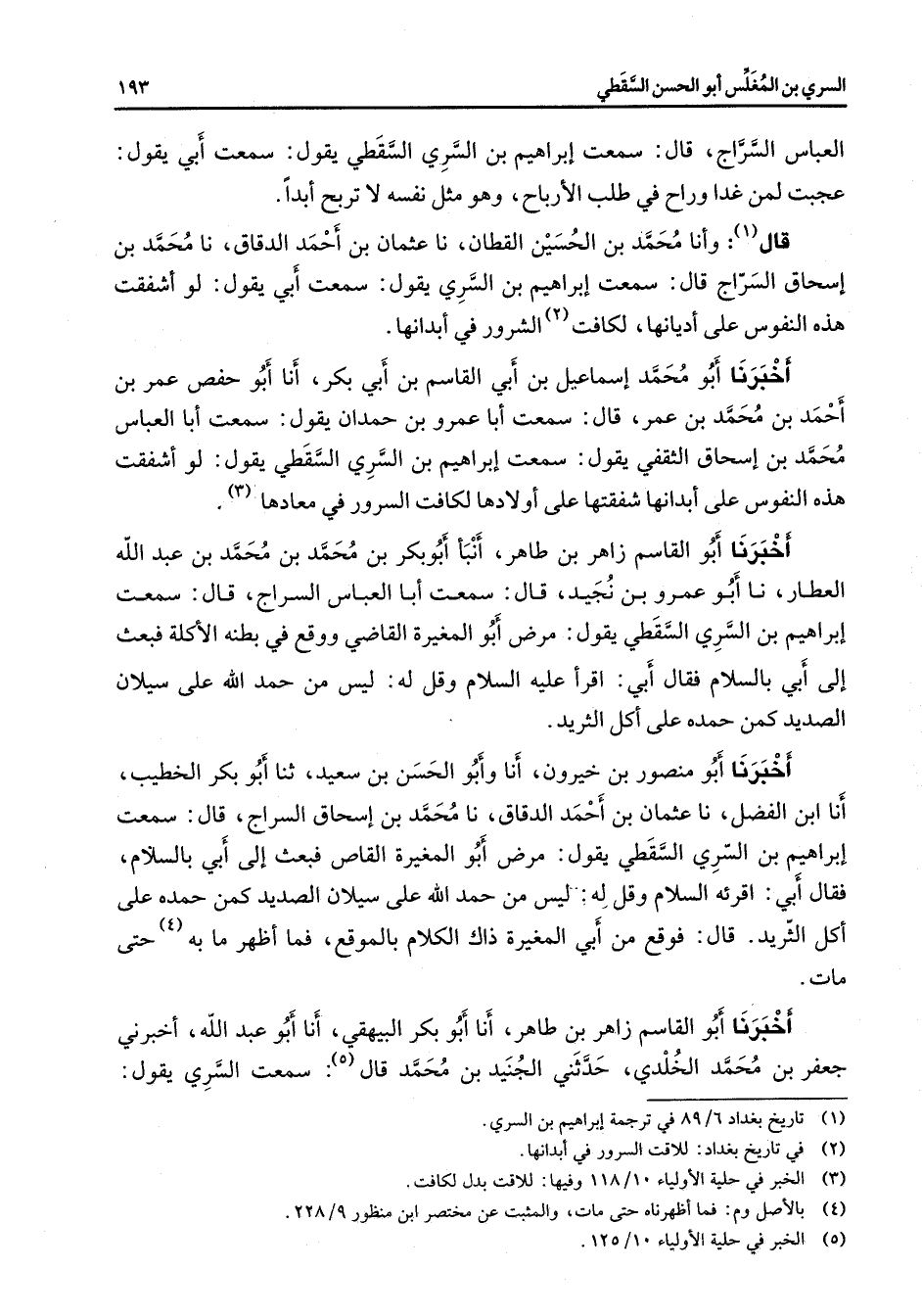 (1) تاريخ بغداد 6 / 89 في ترجمة إبراهيم بن السري