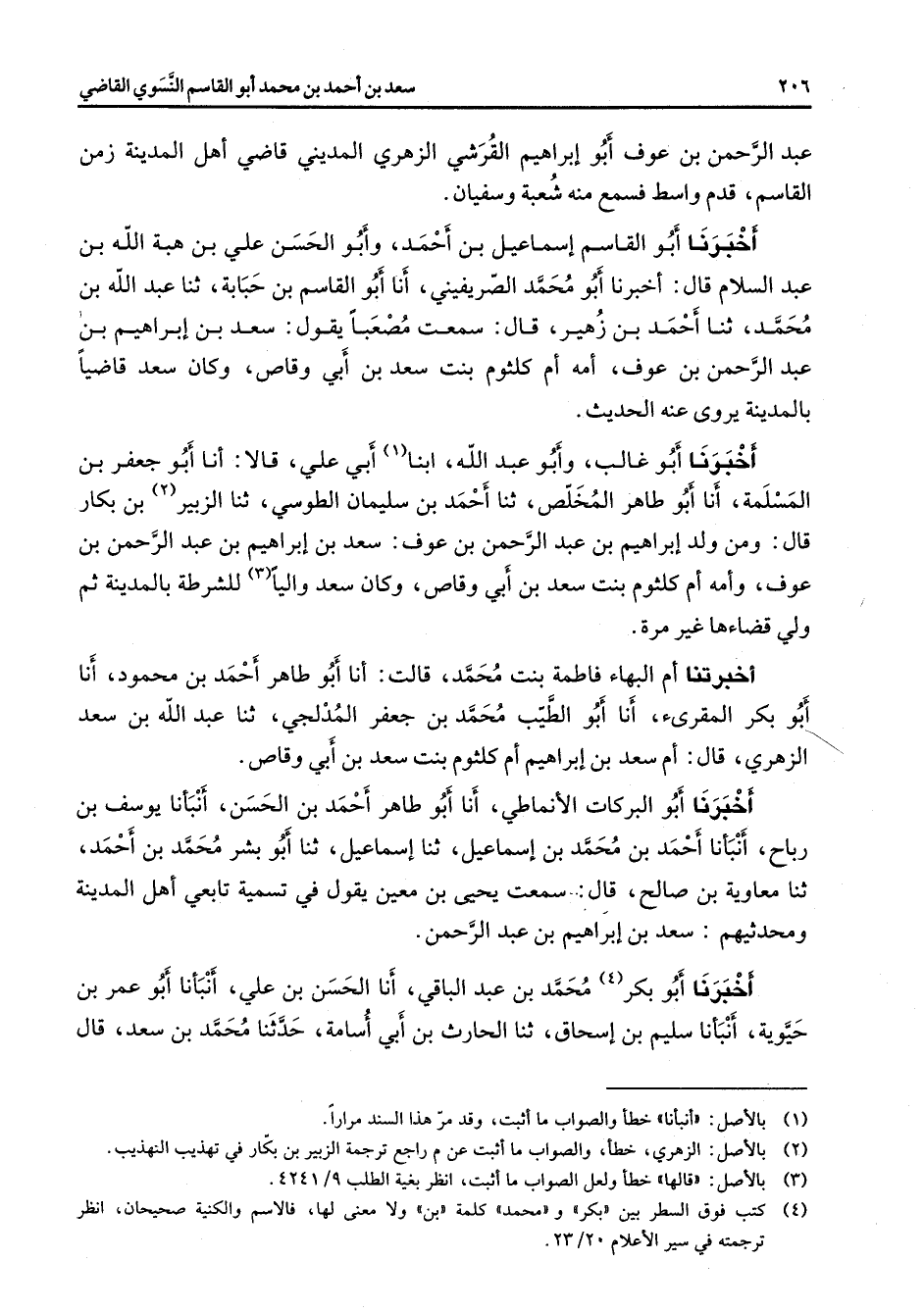 (4) كتب فوق السطر بين " بكر " و " محمد " كلمة " بن " ولا معنى لها فالاسم والكنية صحيحان انظر ترجمته في سير الإعلام 20 / 23
