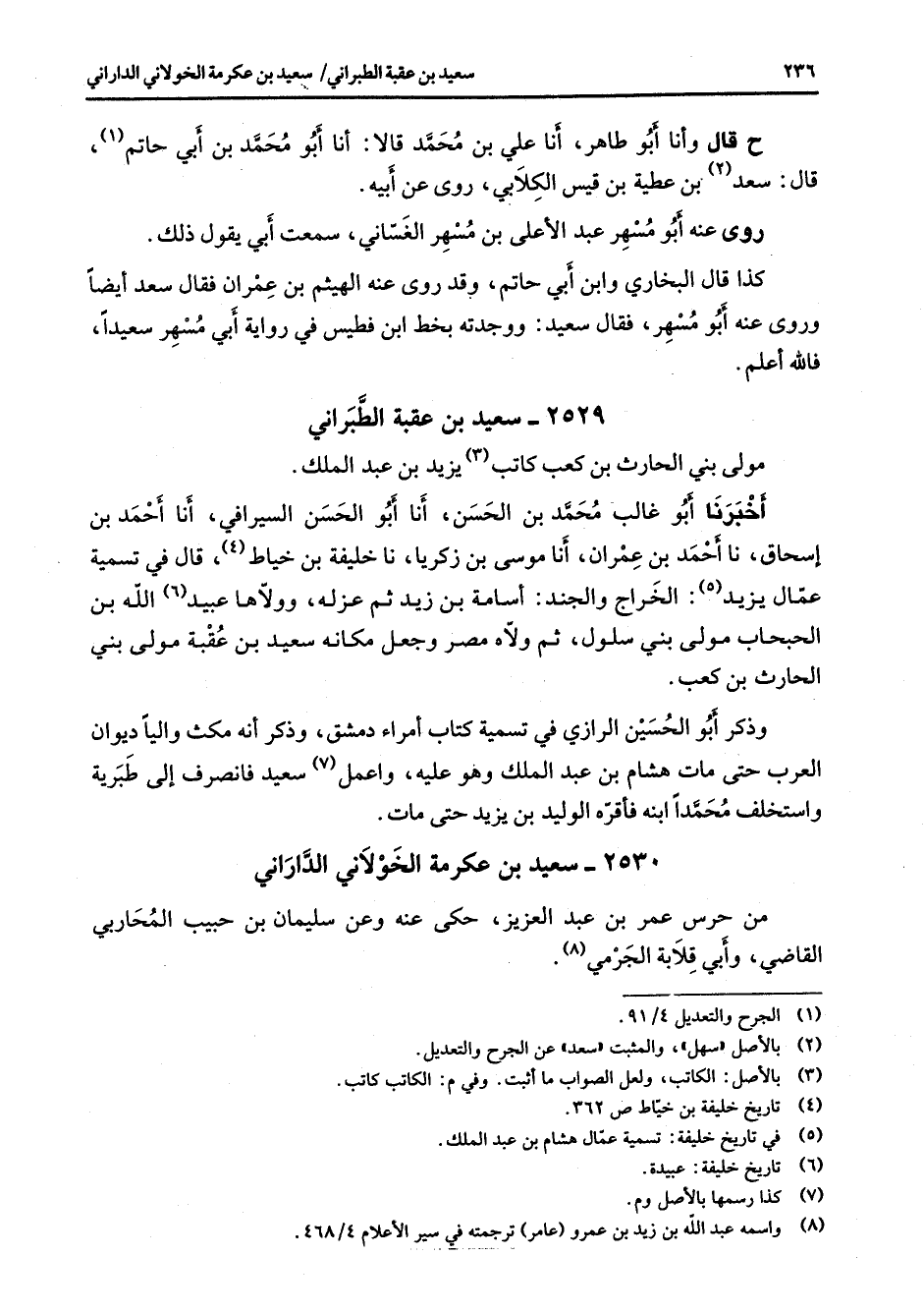 2530 - سعيد بن عكرمة الخولاني الداراني من حرس عمر بن عبد العزيز حكى عنه وعن سليمان بن حبيب المحاربي القاضي وأبي قلابة الجرمي (8)