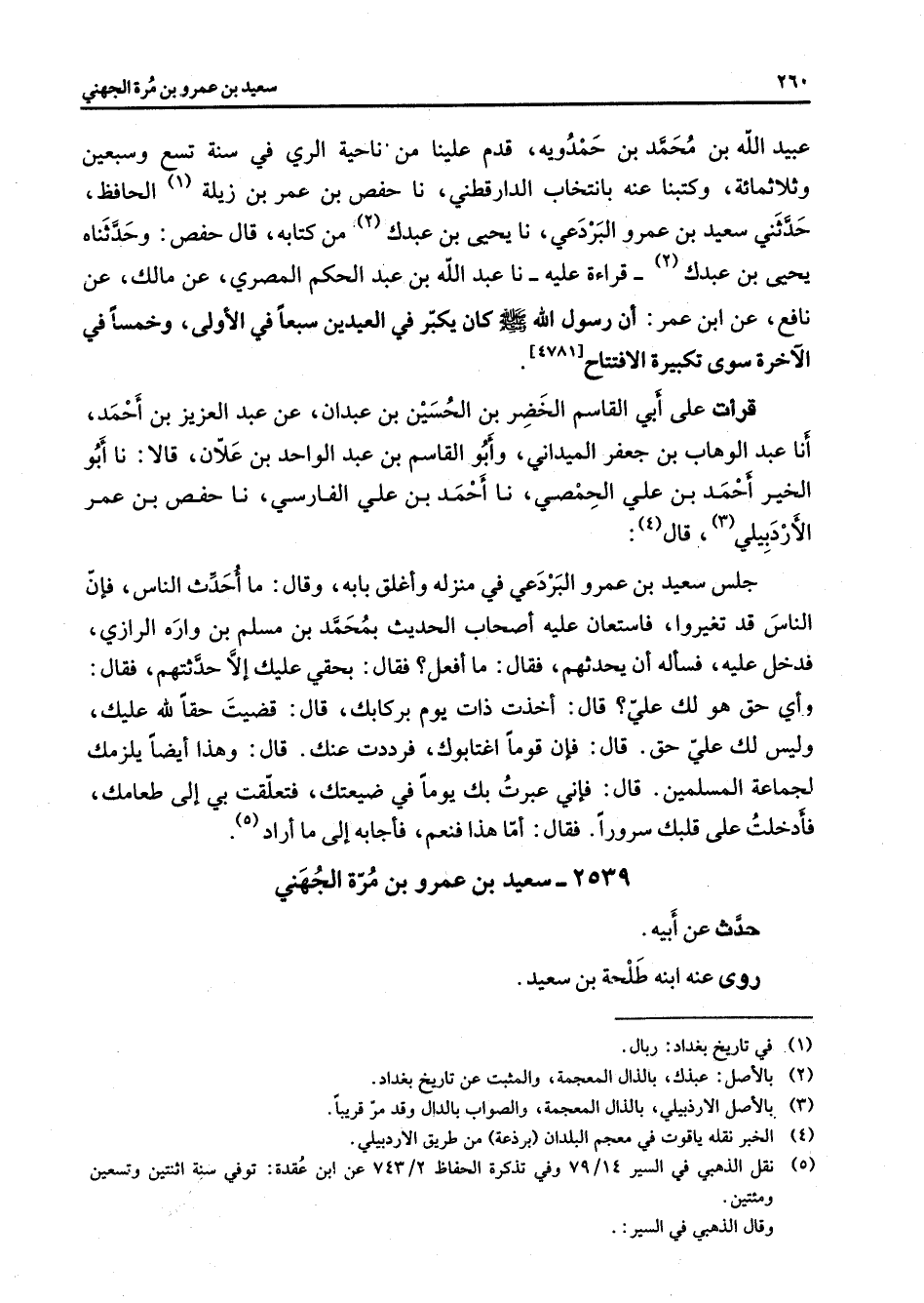 2539 - سعيد بن عمرو بن مرة الجهني حدث عن أبيه روى عنه ابنه طلحة بن سعيد