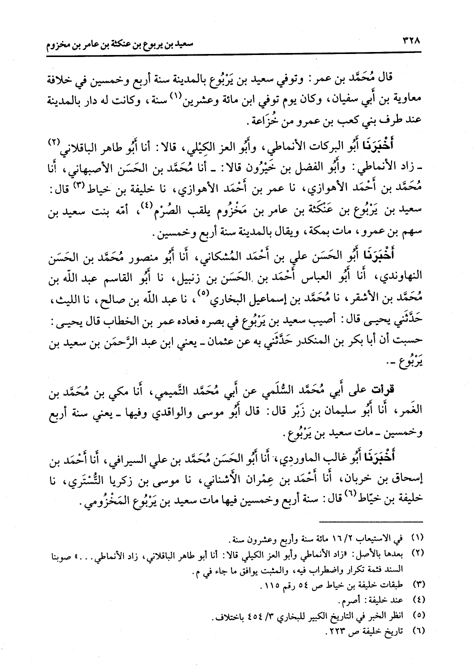 (5) انظر الخبر في التاريخ الكبير للبخاري 3 / 454 باختلاف