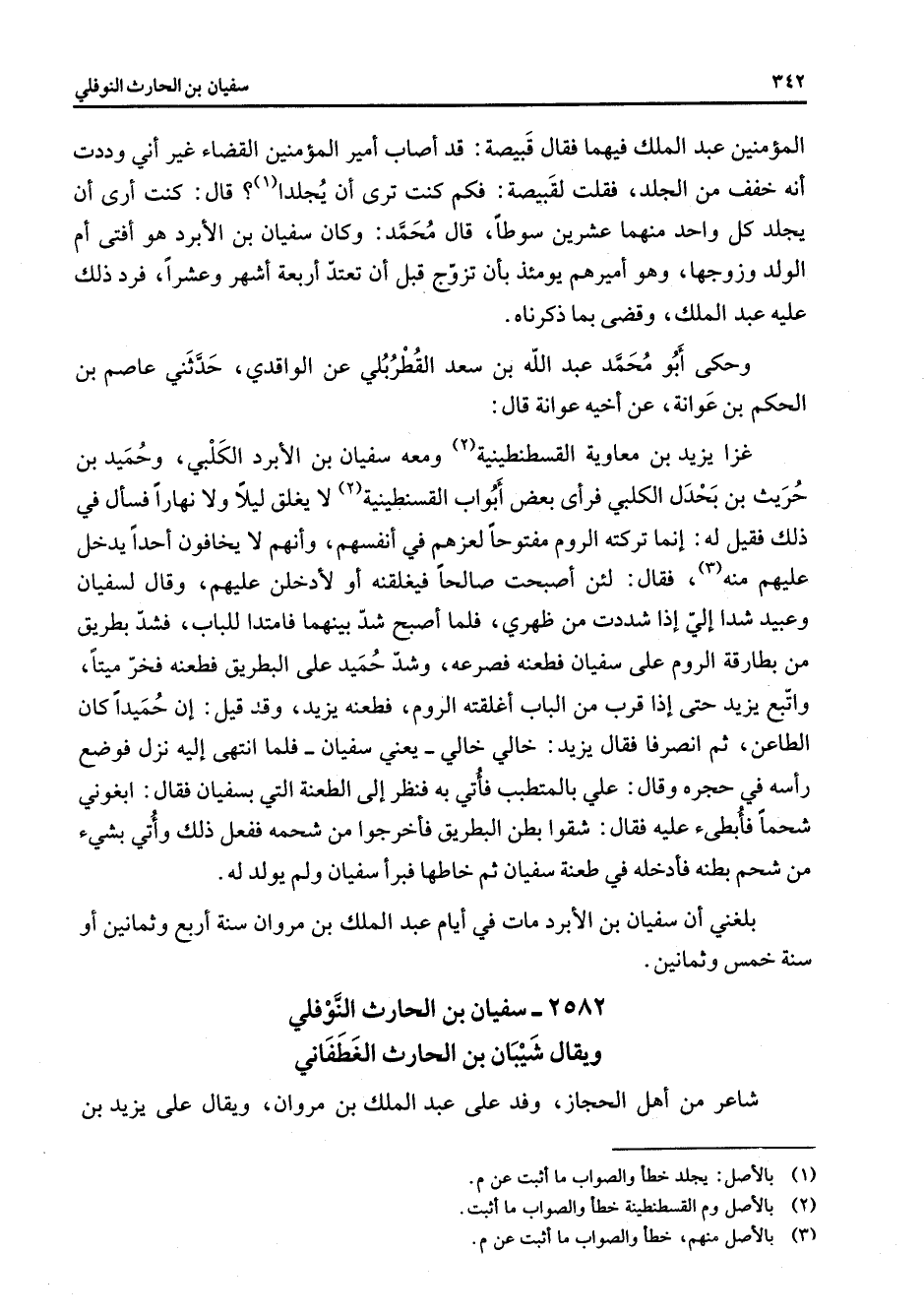2582 - سفيان بن الحارث النوفلي ويقال شيبان بن الحارث الغطفاني شاعر من أهل الحجاز وفد على عبد الملك بن مروان ويقال على يزيد بن