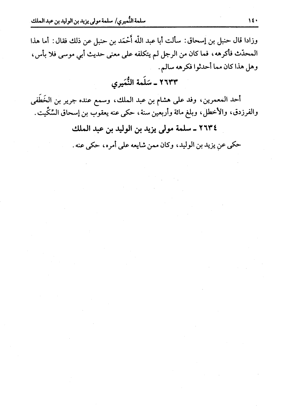 2634 - سلمة مولى يزيد بن الوليد بن عبد الملك حكى عن يزيد بن الوليد وكان ممن شايعه على أمره حكى عنه