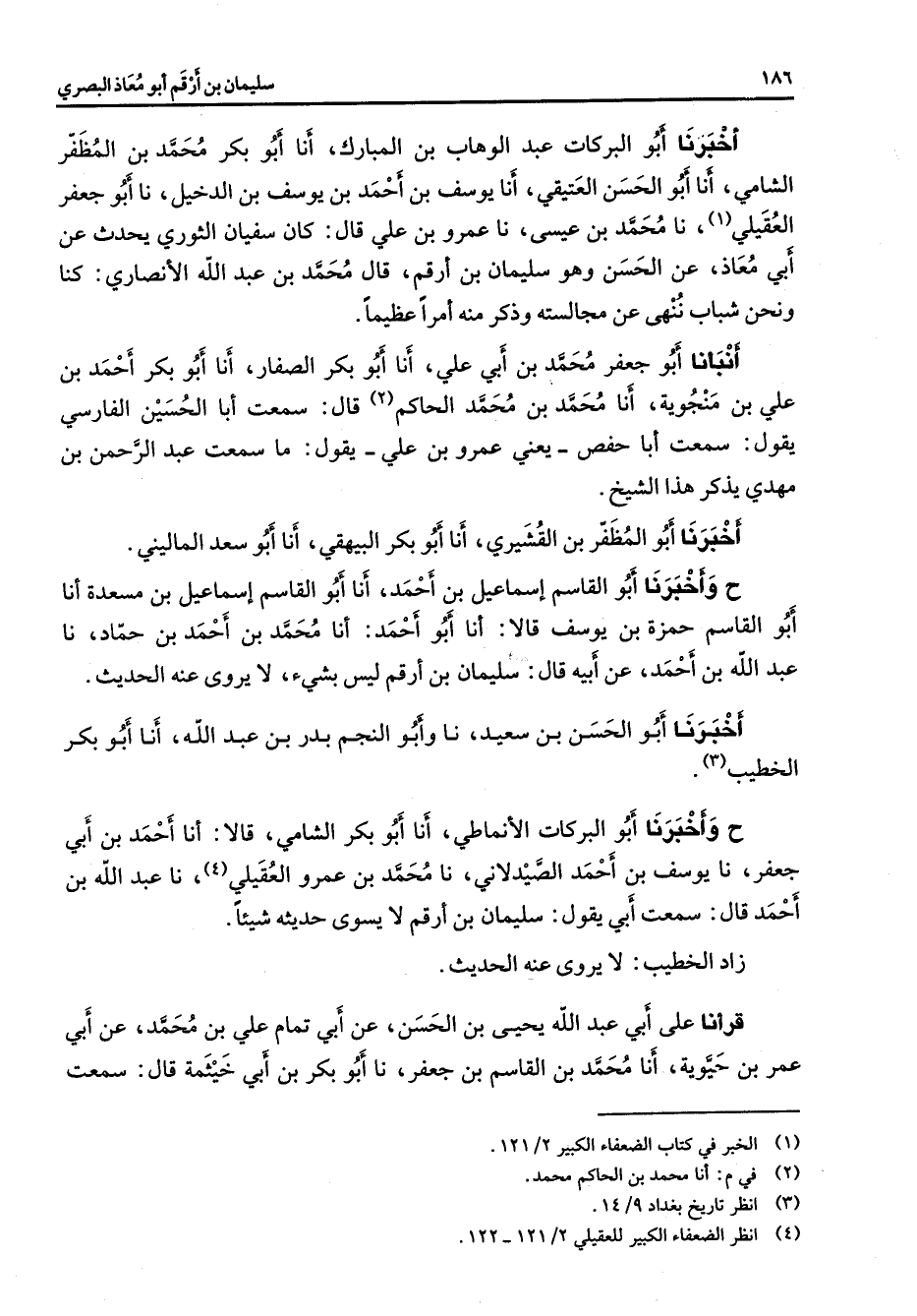 (4) انظر الضعفاء الكبير للعقيلي 2 / 121 - 122