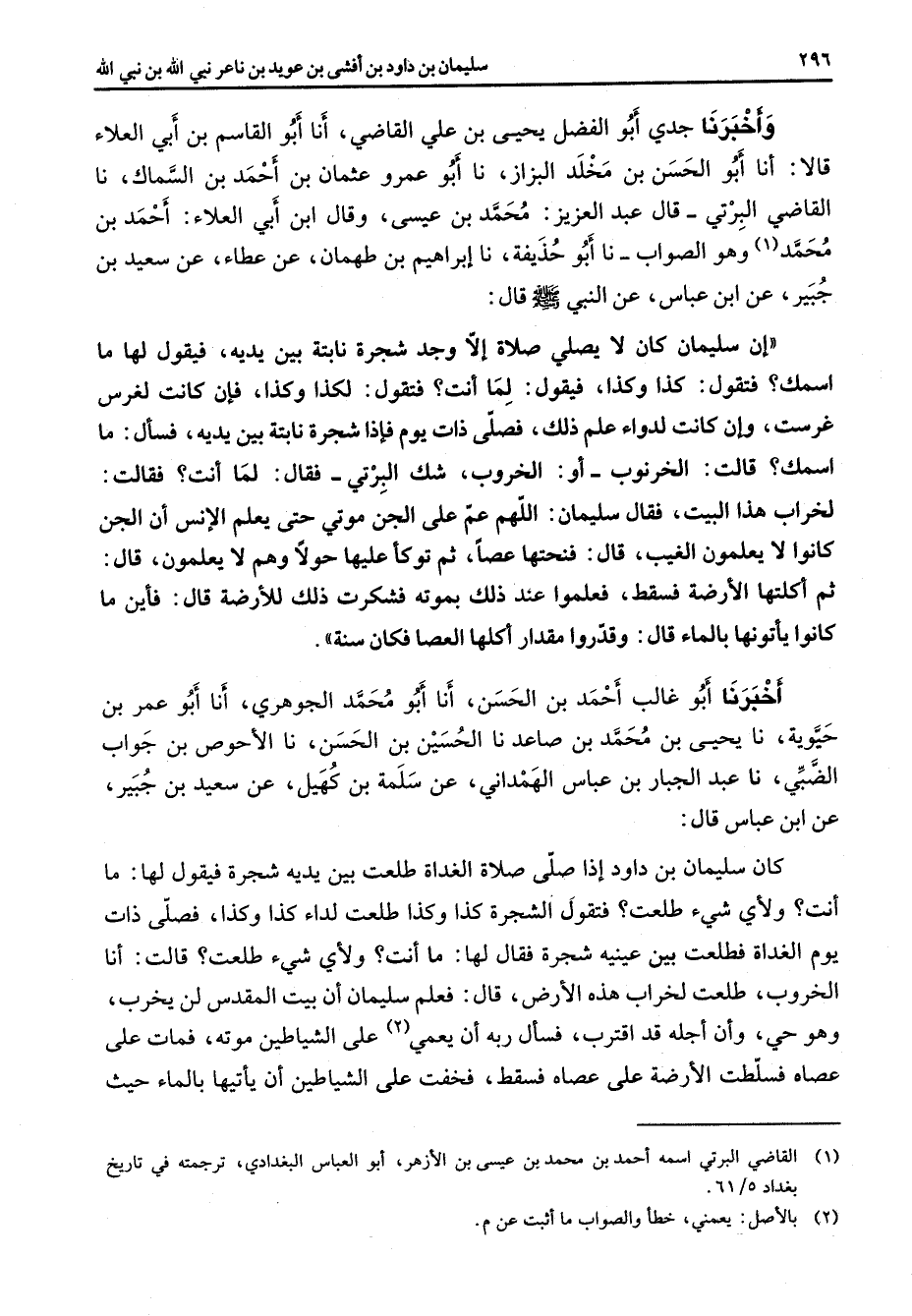 (1) القاضي البرتي اسمه احمد بن محمد بن عيسى بن الازهر أبو العباس البغدادي ترجمته في تاريخ بغداد 5 / 61