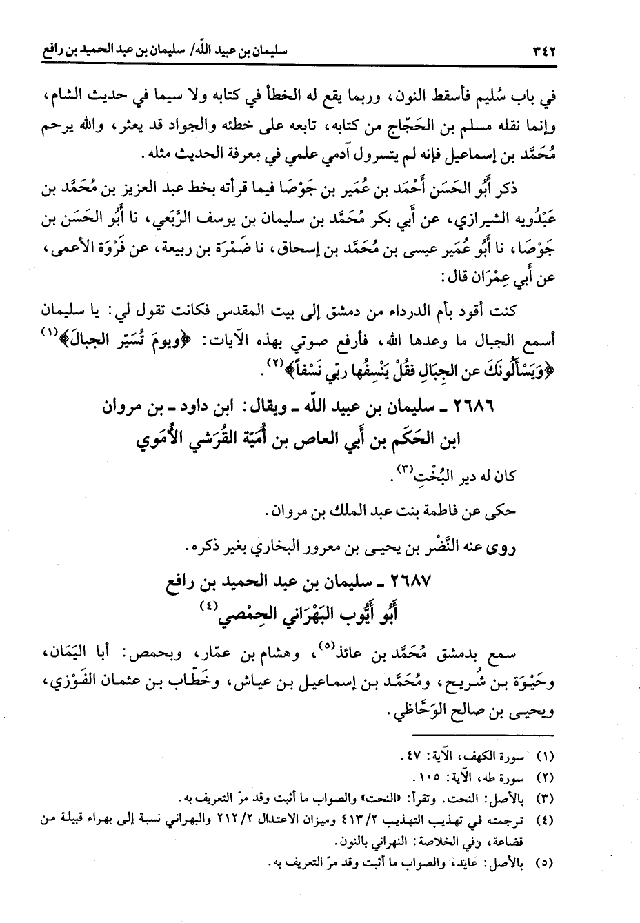2687 - سليمان بن عبد الحميد بن رافع أبو أيوب البهراني الحمصي (4) سمع بدمشق محمد بن عائذ (5) وهشام بن عمار وبحمص أبا اليمان وحيوة بن شريح ومحمد بن إسماعيل بن عياش وخطاب بن عثمان الفوزي ويحيى بن صالح الوحاظي