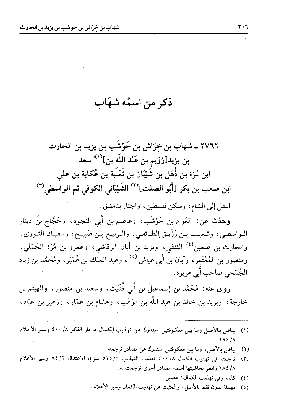 5 - () مهملة بدون نقط بالأصل والمثبت عن تهذيب الكمال وسير الأعلام