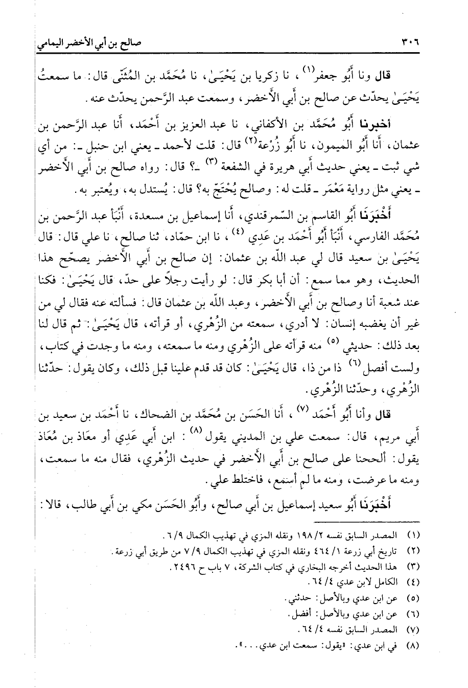 (2) تاريخ أبي زرعة 1 / 464 ونقله المزي في تهذيب الكمال 9 / 7 من طريق أبي زرعة