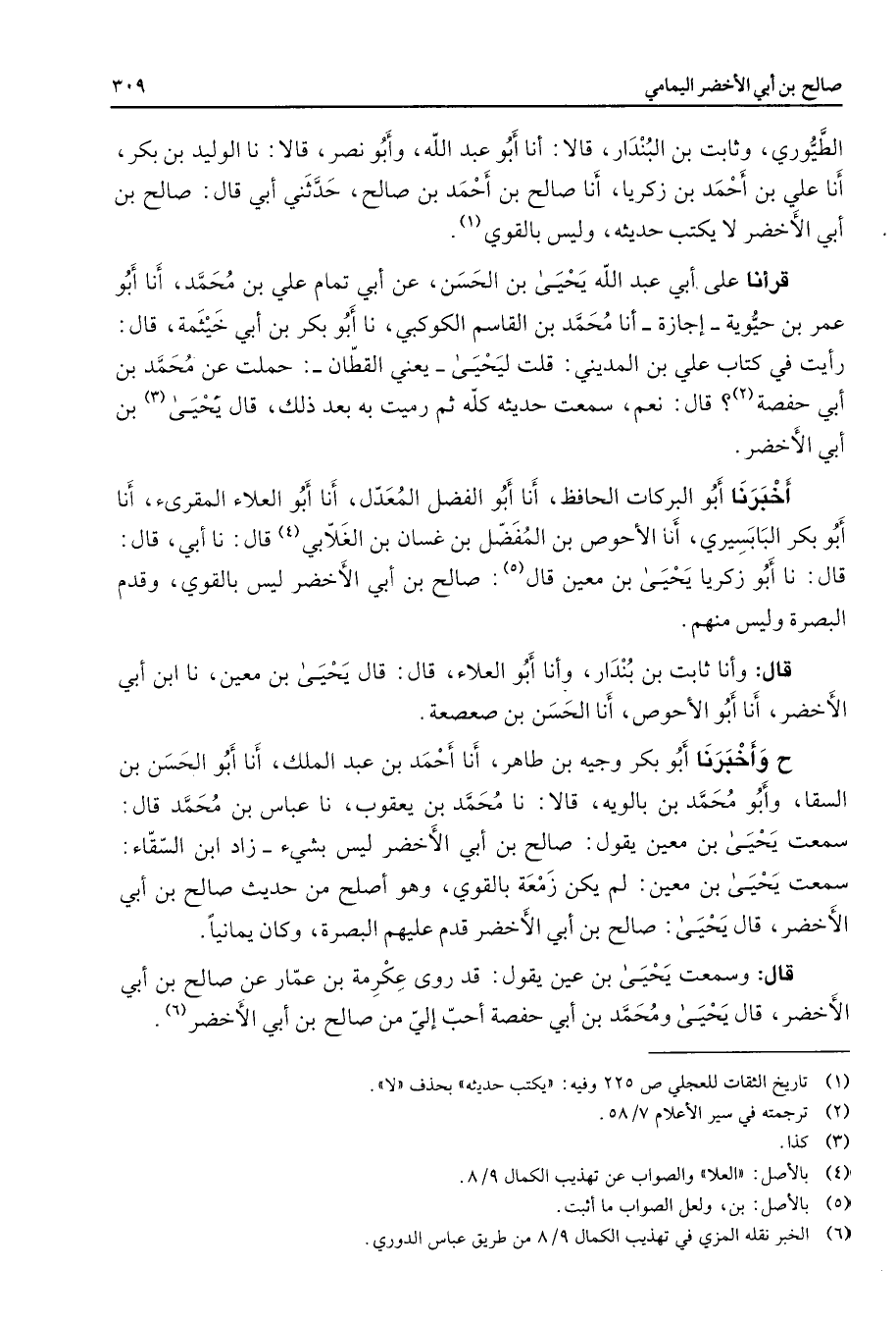 (6) الخبر نقله المزي في تهذيب الكمال 9 / 8 من طريق عباس الدوري