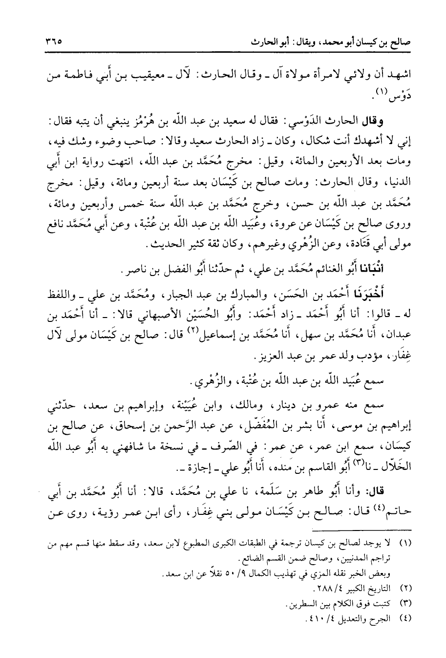 (1) لا يوجد لصالح بن كيسان ترجمة في الطبقات الكبرى المطبوع لابن سعد وقد سقط منها قسم مهم من تراجم المدنيين وصالح ضمن القسم الضائع
