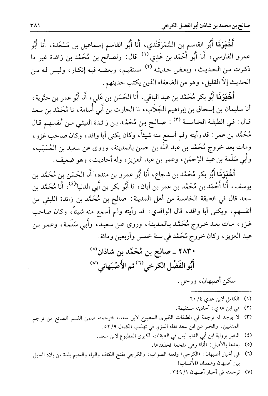 2830 - صالح بن محمد بن شاذان (5) أبو الفضل الكرخي (6) ثم الأصبهاني (7) سكن أصبهان ورحل