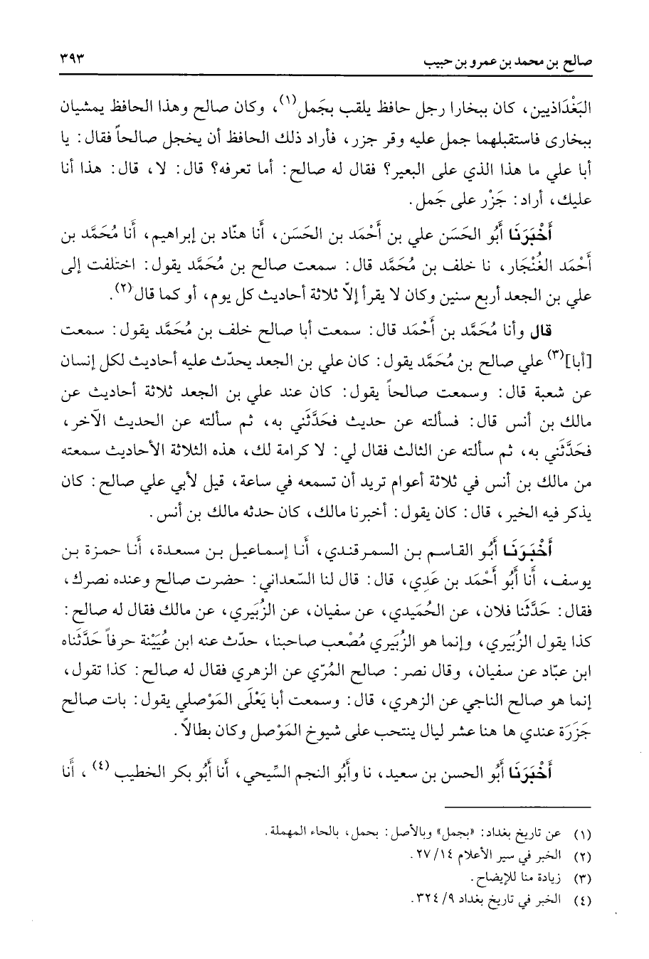 (1) عن تاريخ بغداد: " بجمل " وبالأصل: بحمل بالحاء المهملة