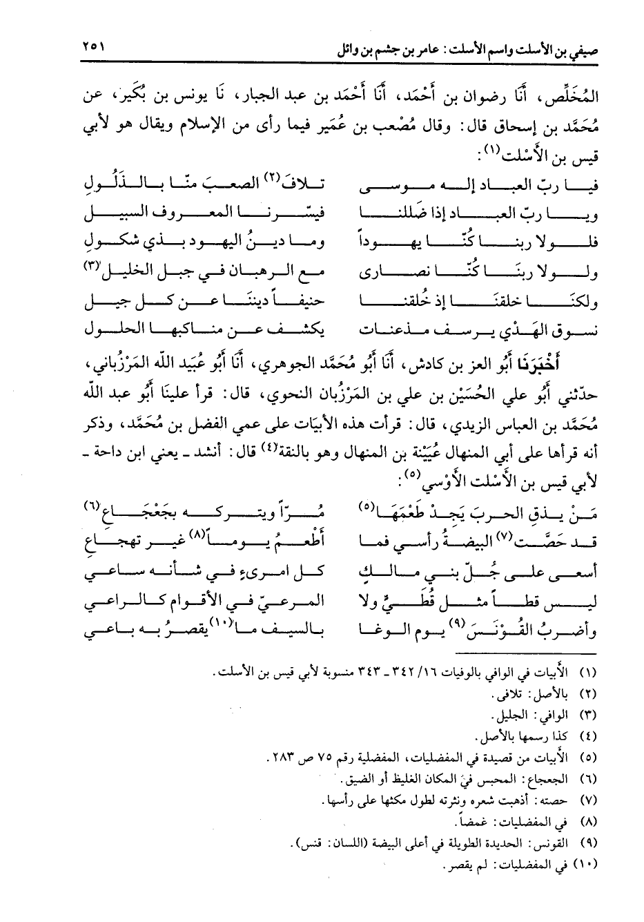 (5) الأبيات من قصيدة في المفضليات المفضلية رقم 75 ص 283