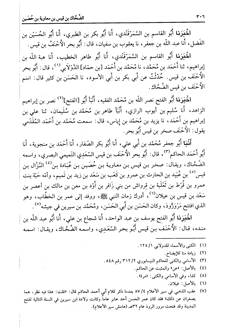 (7) عقب الذهبي في سير الأعلام 4 / 87 بعدما ذكر كلام أبي أحمد الحاكم قال: " قلت: هذا فيه نظر هما يصغران عن ذلك " فقد كان عمر الحسن أحد عشر عاما وكانت ولادة ابن سيرين في السنة التالية لفتح المدينة وقد فتحت مرور الروذ عام 32 هـ (هامش سير الأعلام)