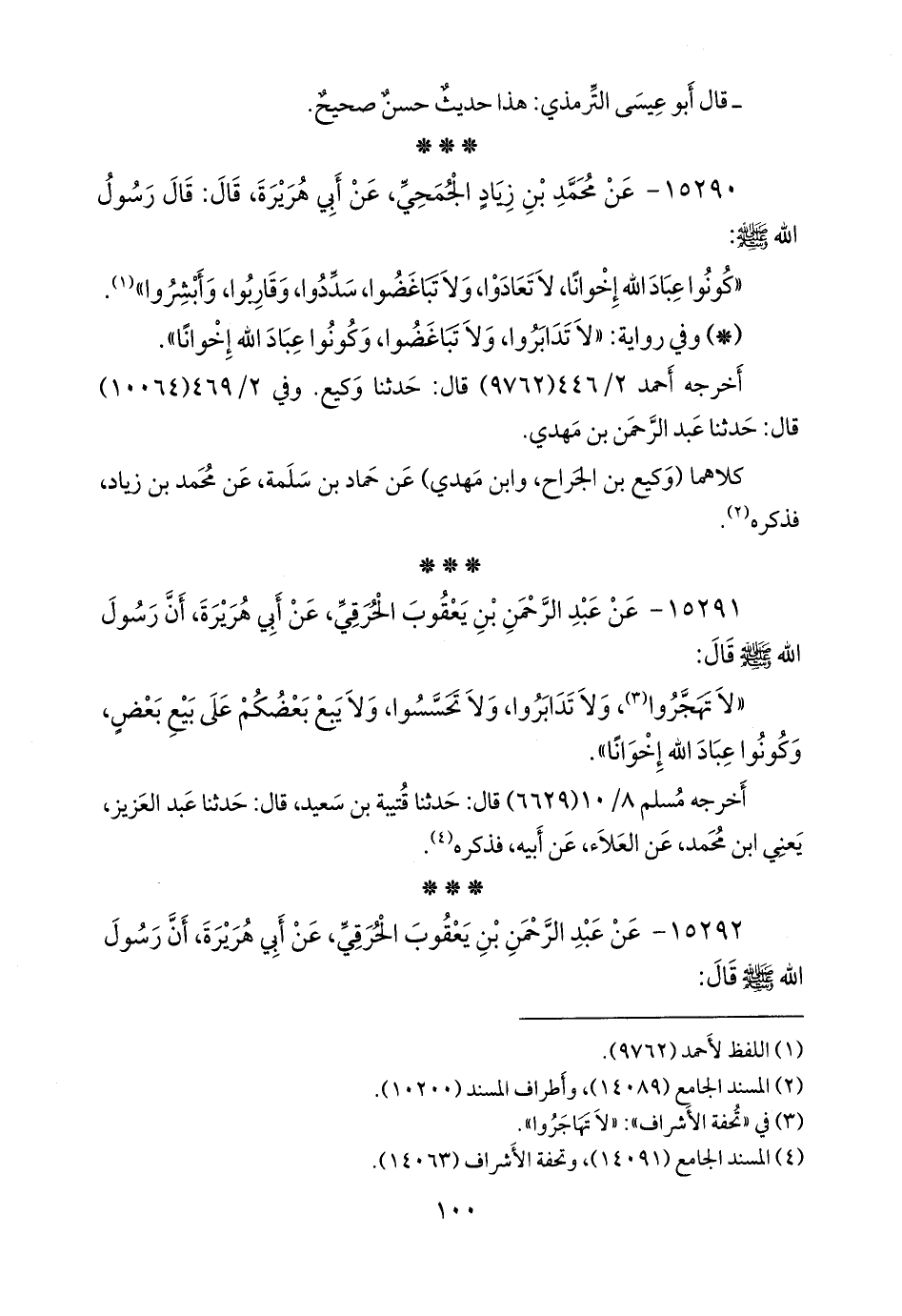 - وفي رواية: «لا تدابروا، ولا تباغضوا، وكونوا عباد الله إخوانا».