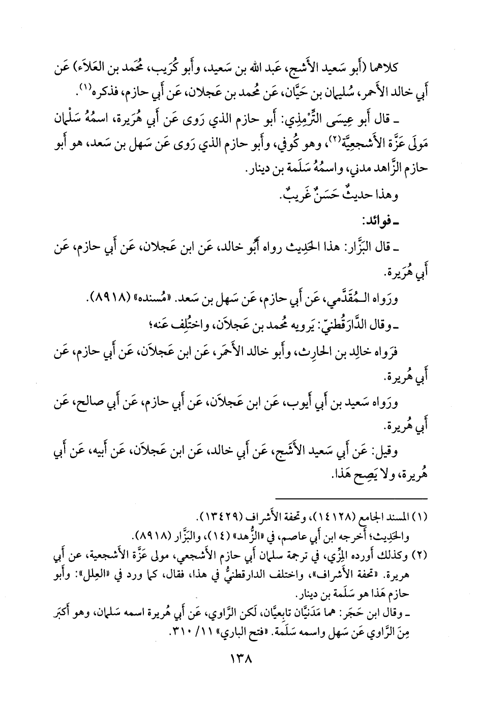 - قال البزار: هذا الحديث رواه أَبو خالد، عن ابن عَجلان، عن أبي حازم، عن أبي هريرة.