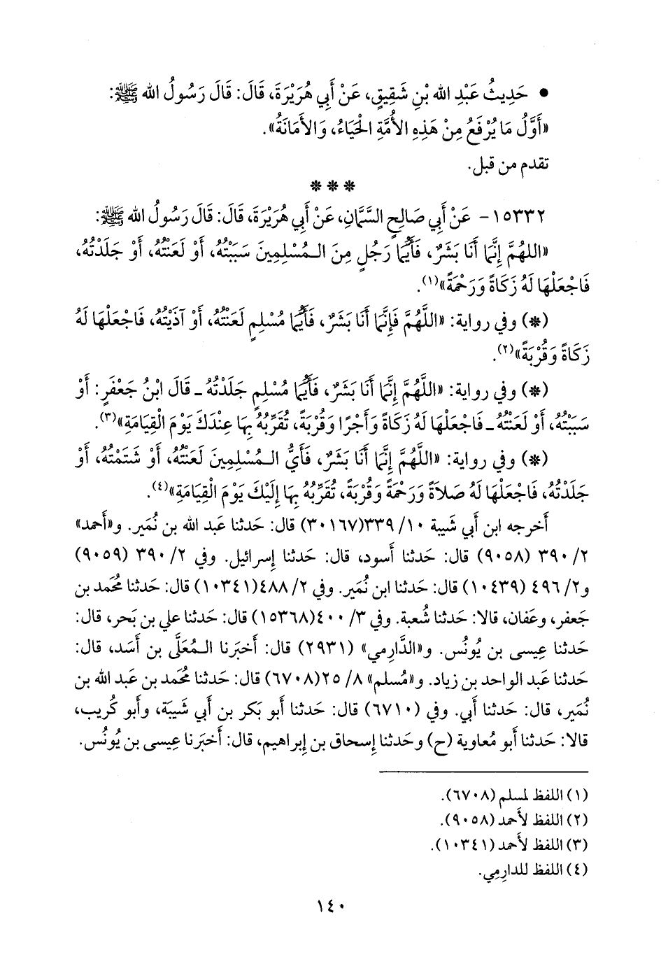(¬١) المسند الجامع (١٤١٢٩)، وتحفة الأشراف (١٢٤٢٢ و ١٢٤٥٢ و ١٢٥٣٤)، وأطراف المسند (١٥٣٠ و ٩١٧٥).