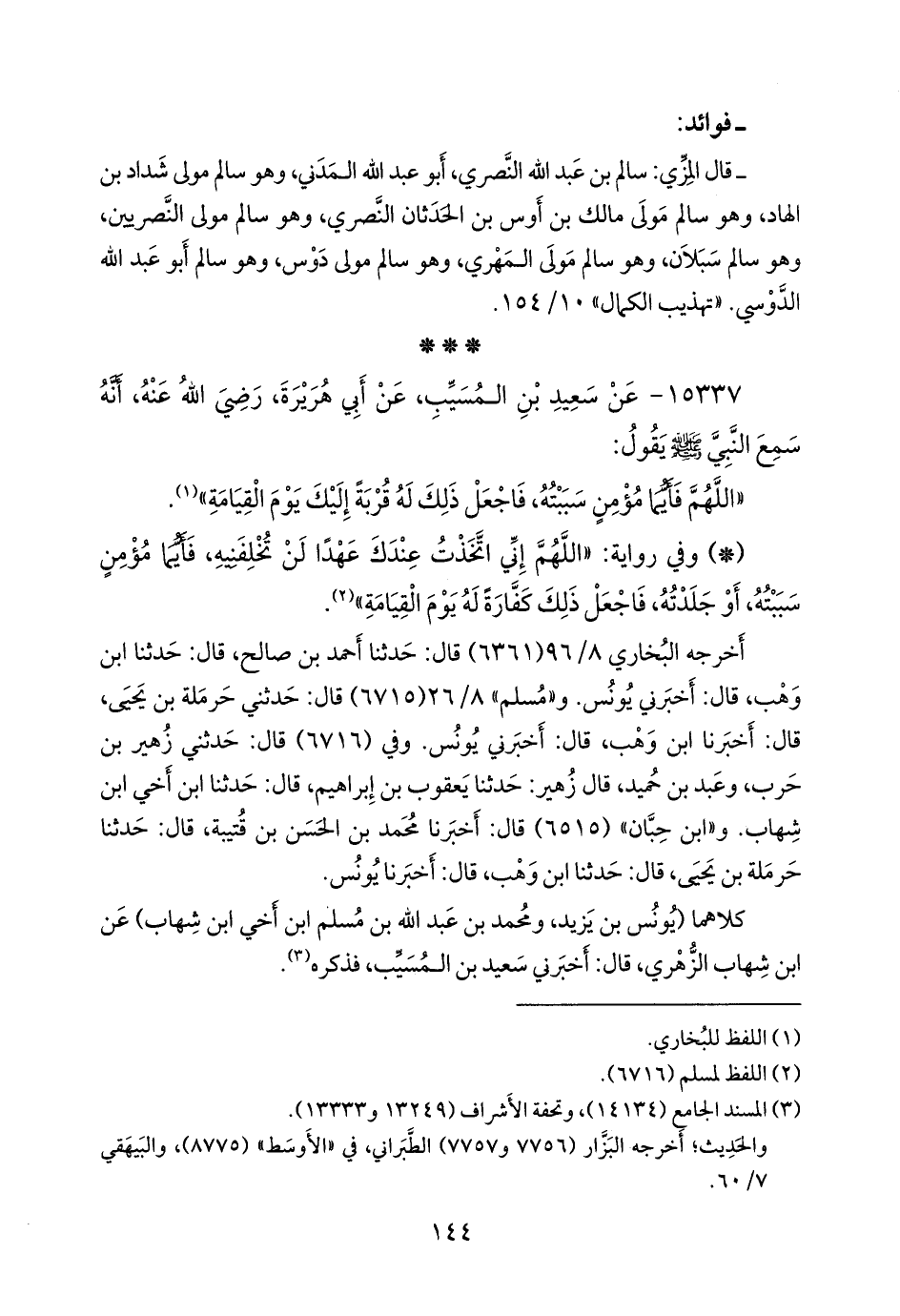 (¬٣) المسند الجامع (١٤١٣٤)، وتحفة الأشراف (١٣٢٤٩ و ١٣٣٣٣).