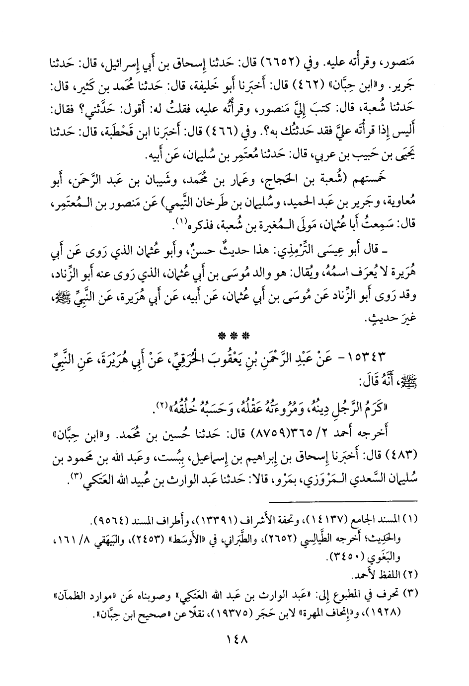 (¬٣) المسند الجامع (١٤١٣٨)، وأطراف المسند (٩٩٤٠)، ومَجمَع الزوائد ١٠/ ٢٥١.