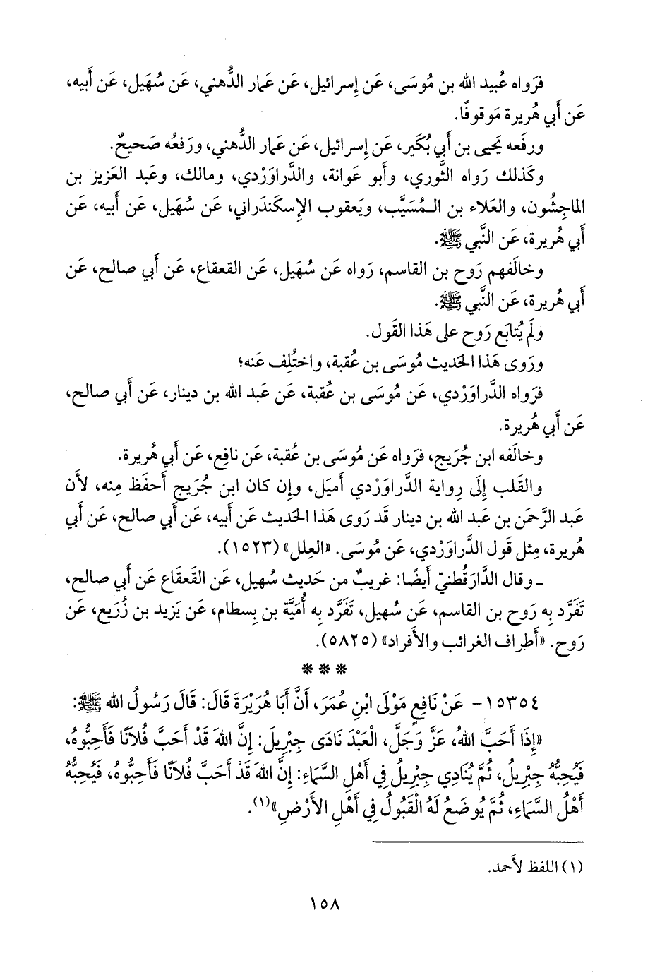 أربعتهم (روح بن عبادة، وعبد الله بن الحارث، ومخلد بن يزيد، وأَبو عاصم الضحاك بن مخلد) عن عبد الملك بن عبد العزيز بن جُريج، قال: أخبرني موسى بن عُقبة، عن نافع، فذكره (¬٢).