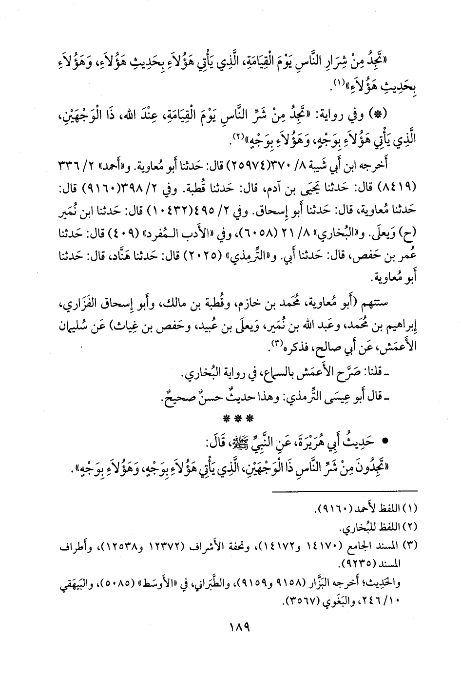 «تجدون من شر الناس ذا الوجهين، الذي يأتي هؤلاء بوجه، وهؤلاء بوجه».