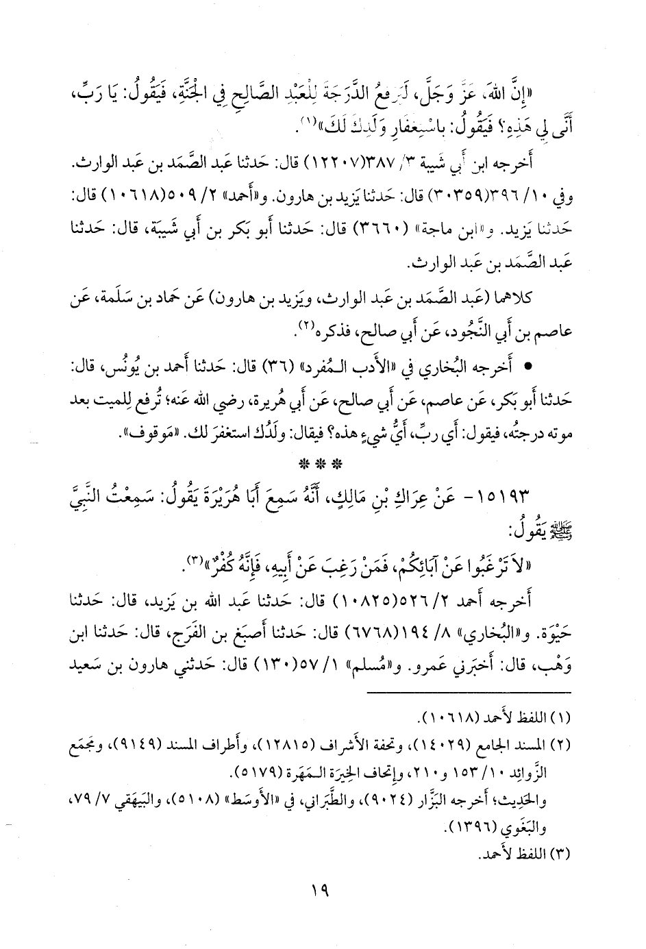 (¬٢) المسند الجامع (١٤٠٣٢)، وتحفة الأشراف (١٤١٥٤)، وأطراف المسند (١٠٠٣٤).
