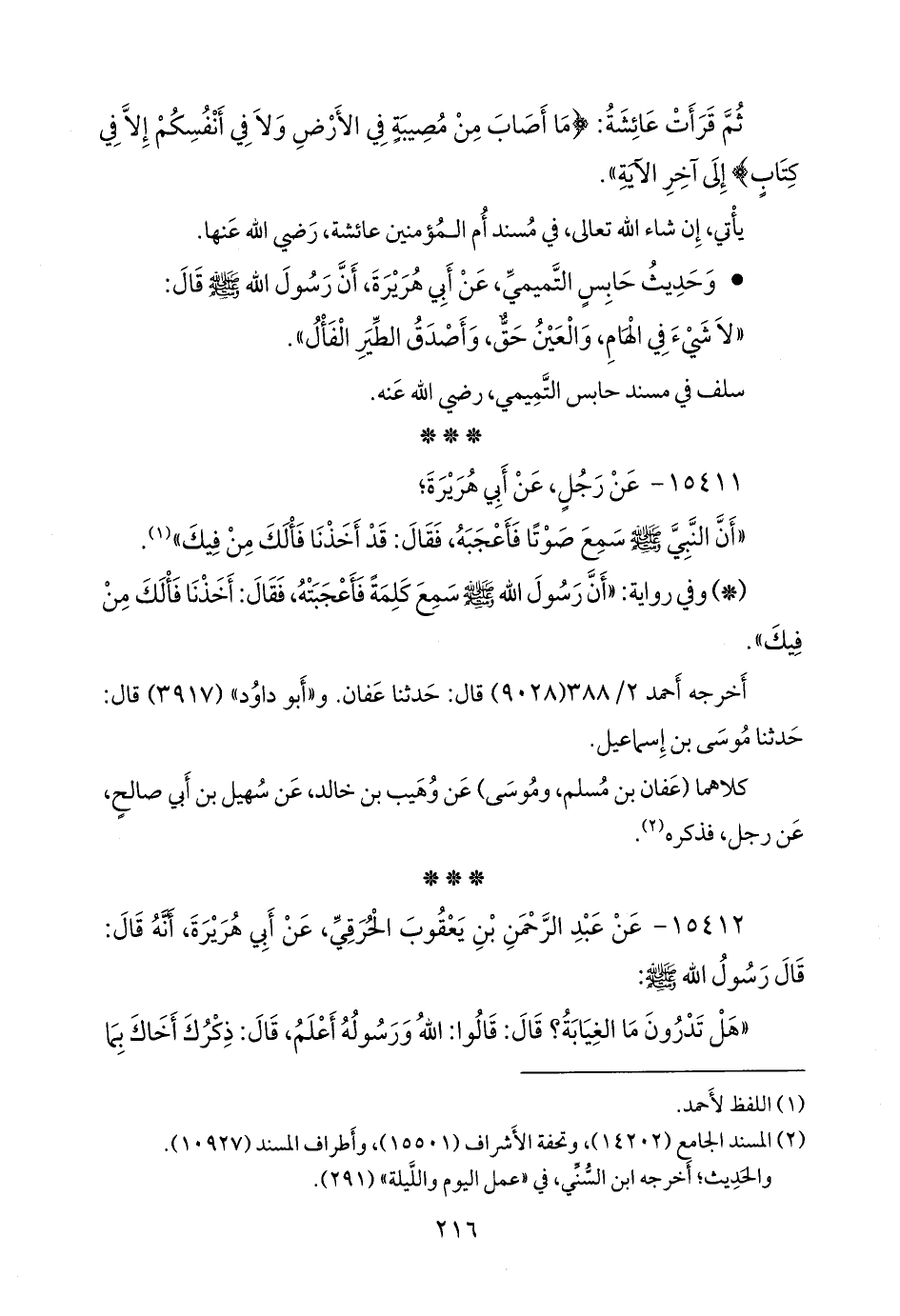(¬٢) المسند الجامع (١٤٢٠٢)، وتحفة الأشراف (١٥٥٠١)، وأطراف المسند (١٠٩٢٧).