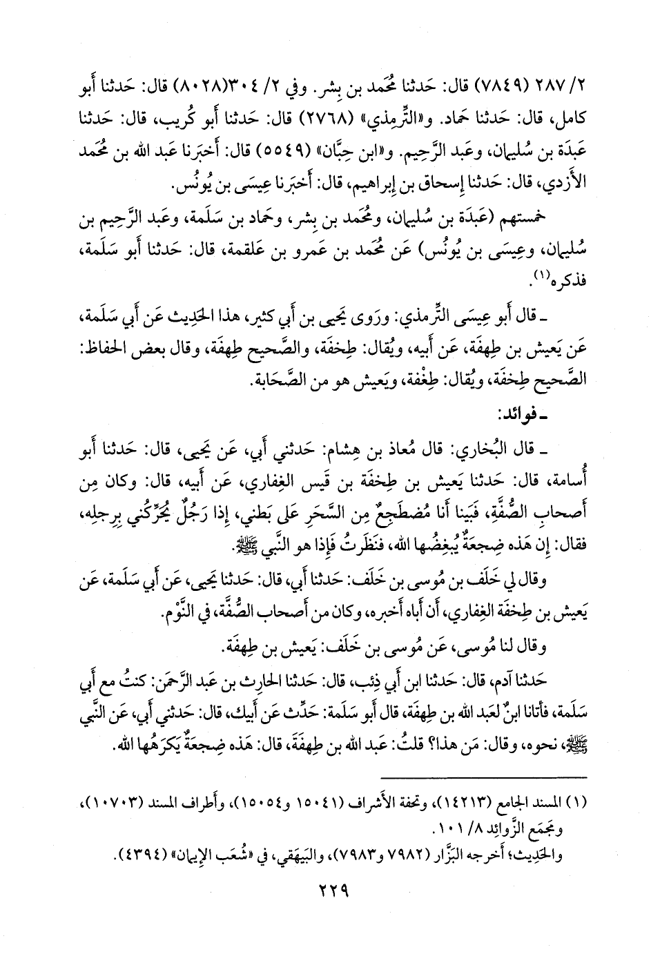 (¬٢) تصحف في الطبعة الهندية وطبعة الناشر المتميز إلى: «قلتُ: من هذا؟ قال»، ولا يستقيم هذا السياق فالسائل هو النبي صَلى الله عَليه وسَلم، وأجابه عبد الله بن طِهفة راوي القصة، وهو على الصواب في «التاريخ الأوسط» للبخاري (٦١٦)، بإسناده.