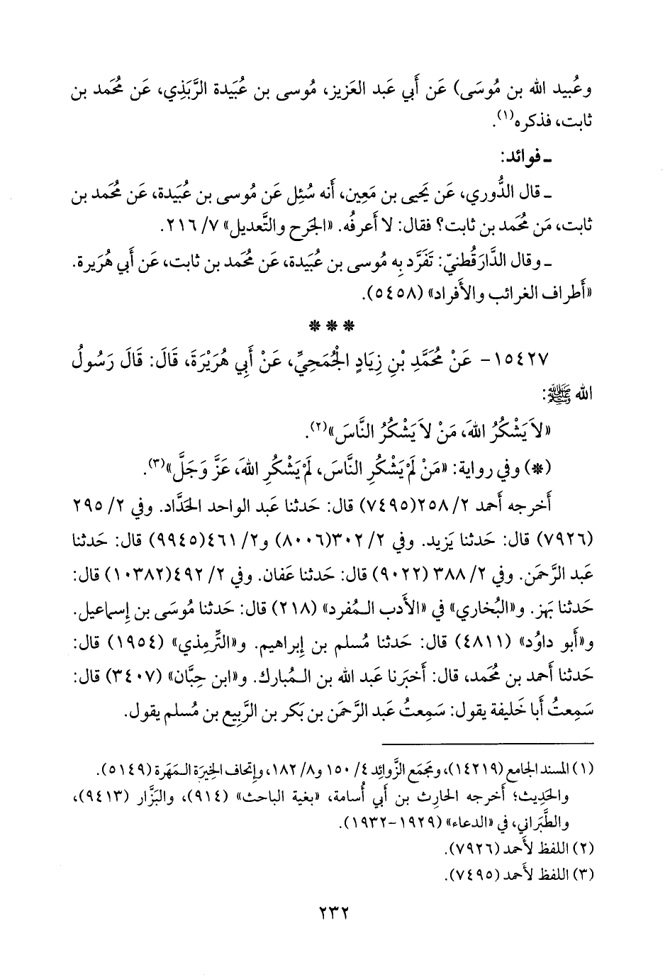(¬٣) المسند الجامع (١٤٢٢٠)، وتحفة الأشراف (١٤٣٦٨)، وأطراف المسند (١٠١٧٣)، وإتحاف الخِيرَة المَهَرة (٧١٧٦).