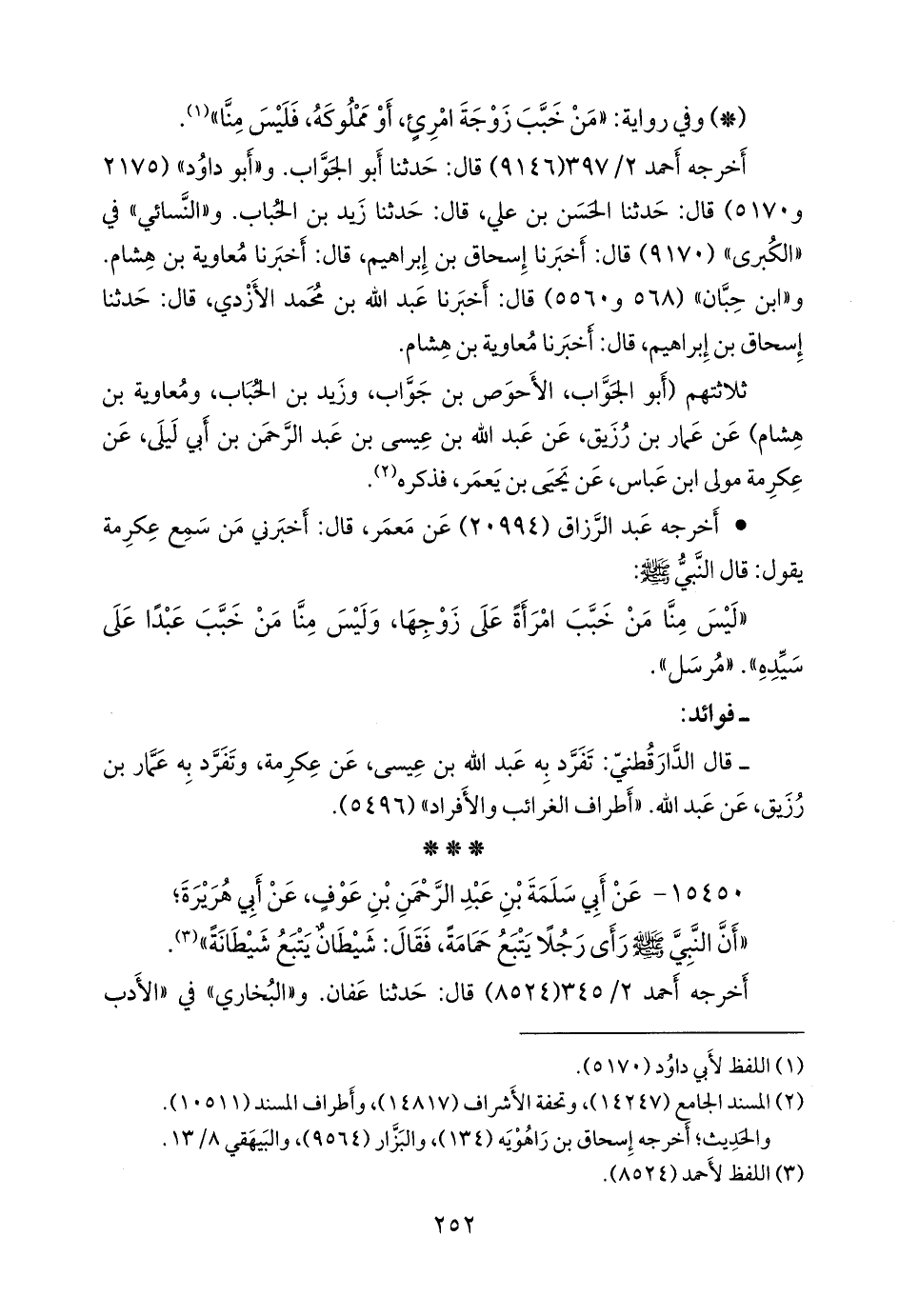 (¬٢) المسند الجامع (١٤٢٥٠)، وتحفة الأشراف (١٥٠١٢)، وأطراف المسند (١٠٦٨٥).