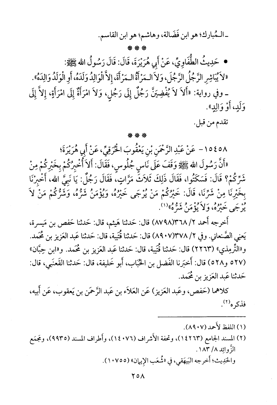 (¬٢) المسند الجامع (١٤٢٦٣)، وتحفة الأشراف (١٤٠٧٦)، وأطراف المسند (٩٩٣٥)، ومَجمَع الزوائد ٨/ ١٨٣.