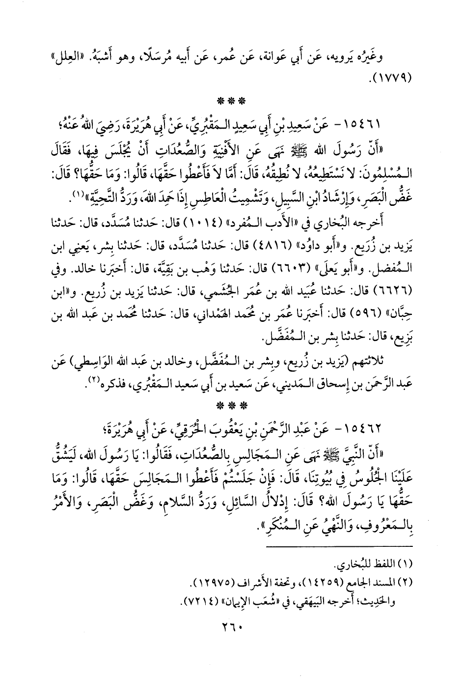 ثلاثتهم (يزيد بن زُريع، وبشر بن المُفَضَّل، وخالد بن عبد الله الواسطي) عن عبد الرَّحمَن بن إسحاق المديني، عن سعيد بن أبي سعيد المَقبُري، فذكره (¬٢).