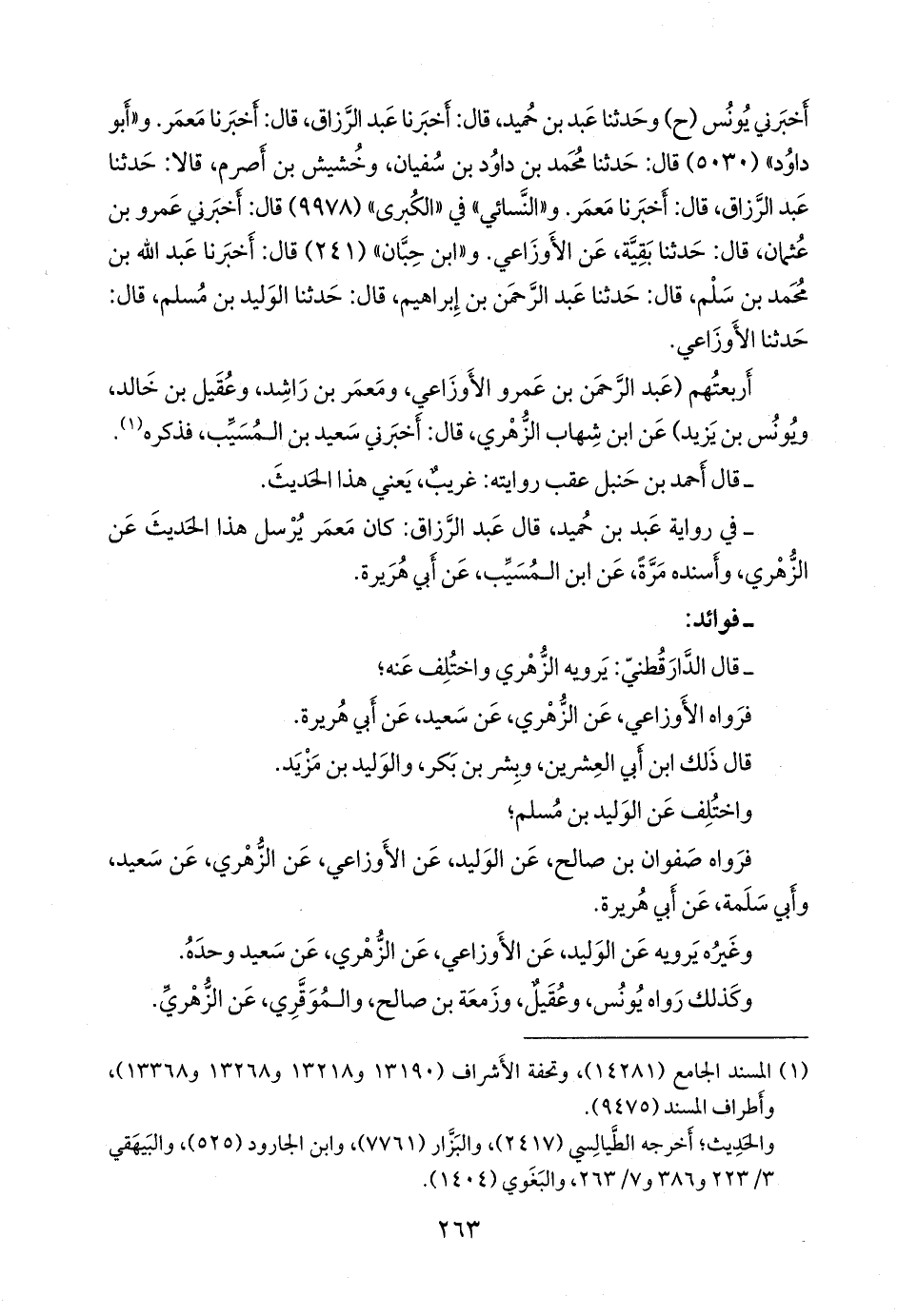 و «أَبو داود» (٥٠٣٠) قال: حدثنا محمد بن داود بن سفيان، وخشيش بن أصرم، قالا: حدثنا عبد الرزاق، قال: أخبرنا مَعمَر. و «النَّسَائي» في «الكبرى» (٩٩٧٨) قال: أخبرني عَمرو بن عثمان، قال: حدثنا بقية، عن الأوزاعي. و «ابن حِبَّان» (٢٤١) قال: أخبرنا عبد الله بن محمد بن سَلم، قال: حدثنا عبد الرَّحمَن بن إبراهيم، قال: حدثنا الوليد بن مسلم، قال: حدثنا الأوزاعي.
