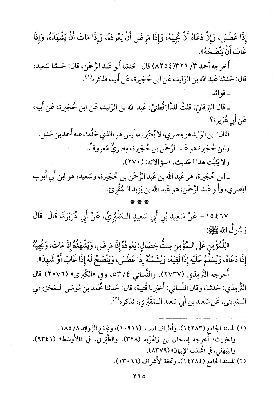 (¬٢) المسند الجامع (١٤٢٨٤)، وتحفة الأشراف (١٣٠٦٦).
