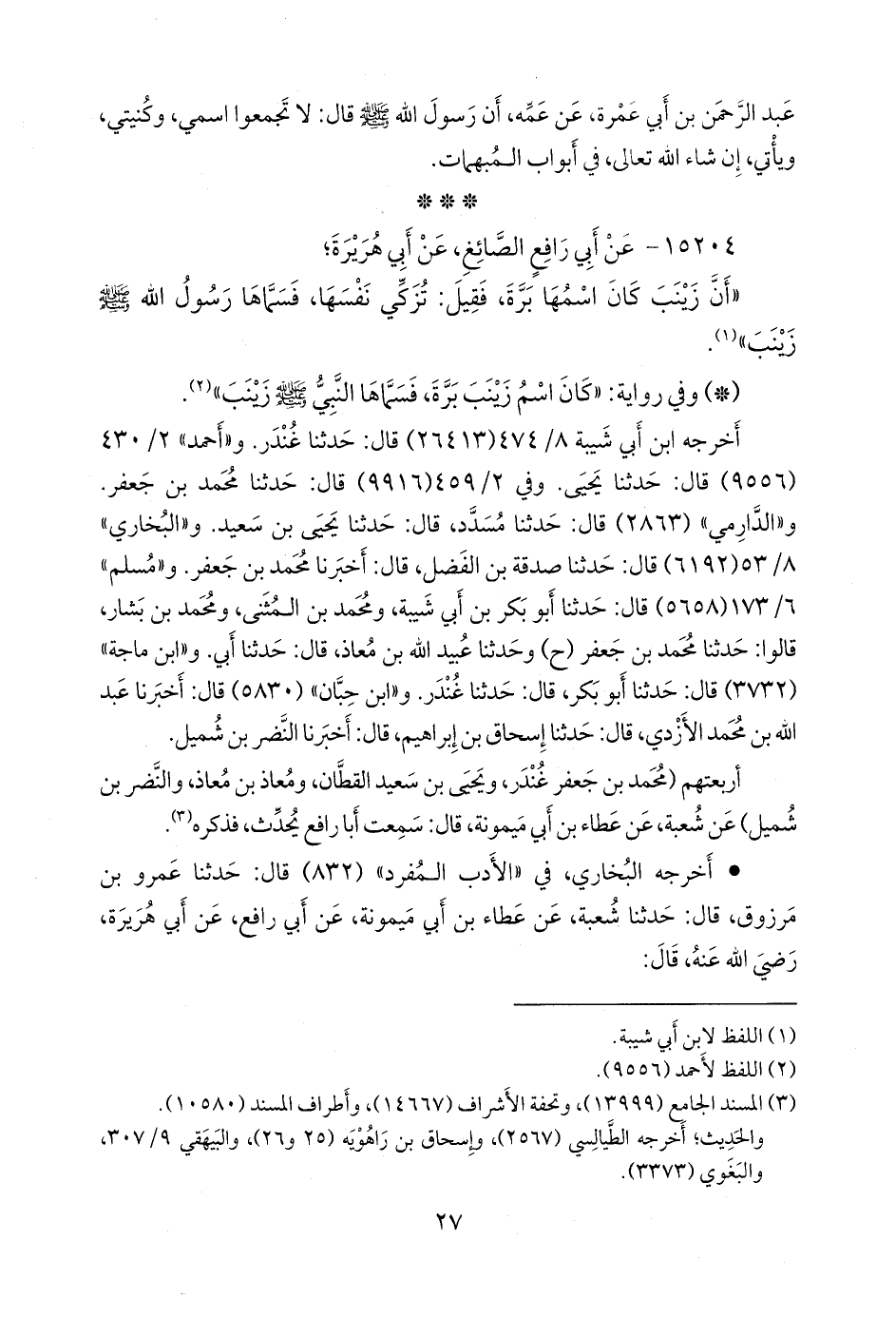 (¬٣) المسند الجامع (١٣٩٩٩)، وتحفة الأشراف (١٤٦٦٧)، وأطراف المسند (١٠٥٨٠).