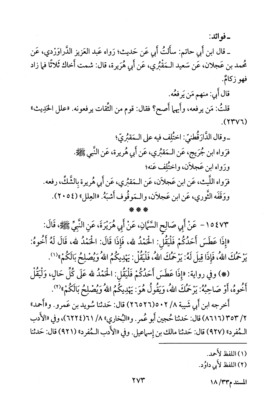 (¬٣) المسند الجامع (١٤٢٧٣)، وتحفة الأشراف (١٢٨١٨)، وأطراف المسند (٩٣١٢).
