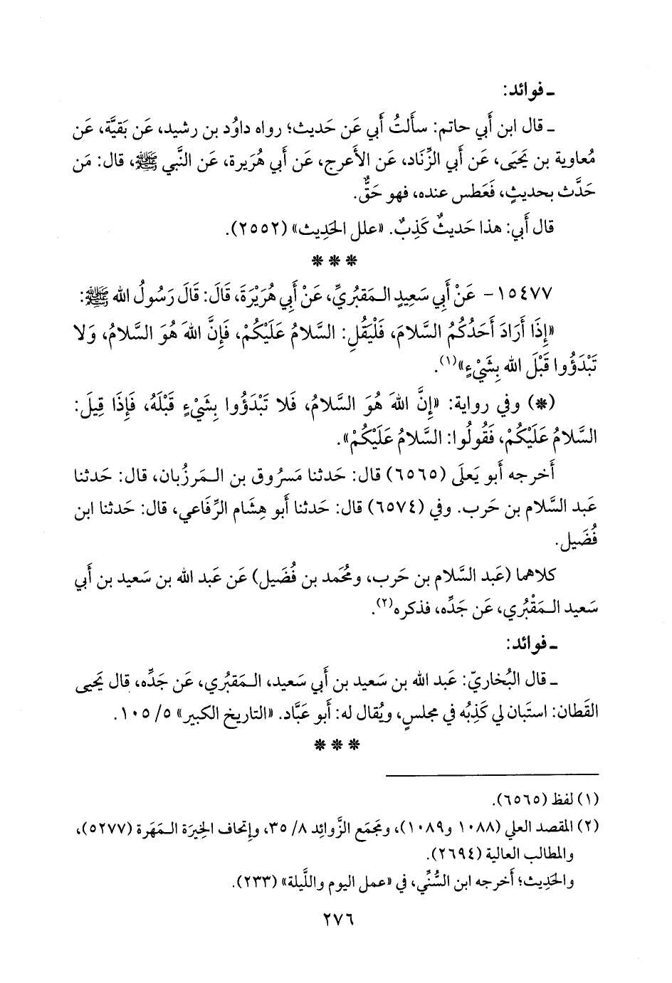 ١٥٤٧٧ - عن أبي سعيد المَقبُري، عن أبي هريرة، قال: قال رسول الله صَلى الله عَليه وسَلم: