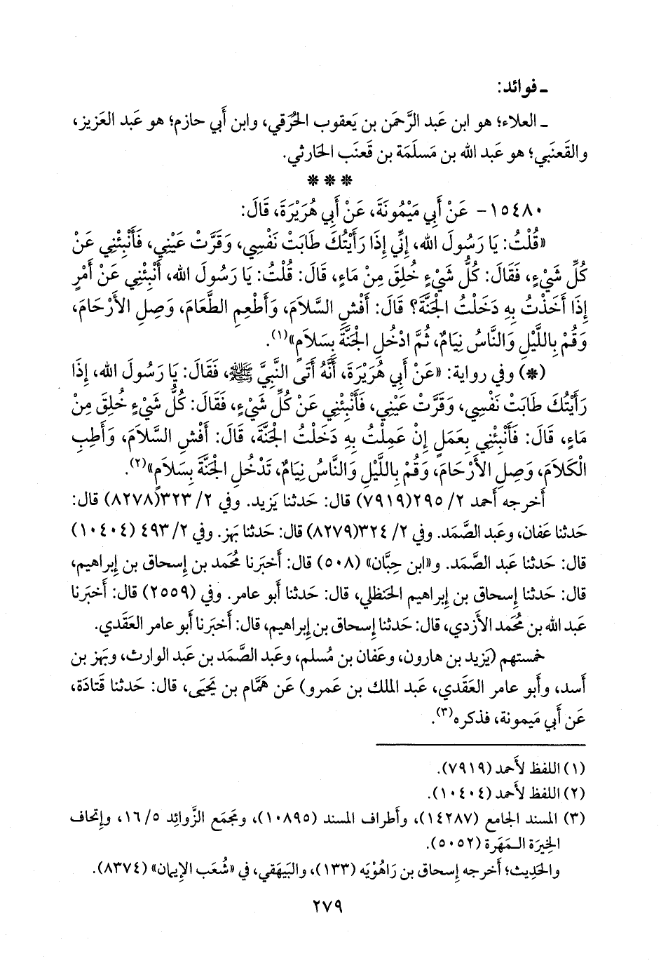 (¬٣) المسند الجامع (١٤٢٨٧)، وأطراف المسند (١٠٨٩٥)، ومَجمَع الزوائد ٥/ ١٦، وإتحاف الخِيرَة المَهَرة (٥٠٥٢).