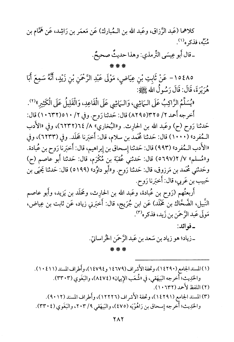 (¬٢) المسند الجامع (١٤٢٩١)، وتحفة الأشراف (١٢٢٢٦)، وأطراف المسند (٩٠١٢).