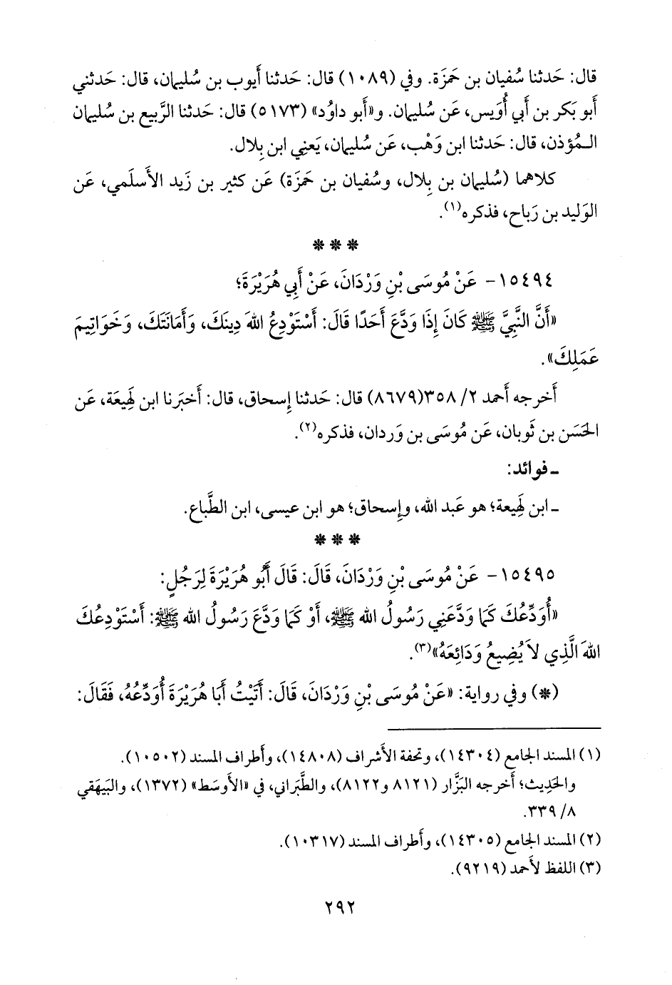 (¬٣) المسند الجامع (١٤٣٠٥)، وتحفة الأشراف (١٤٦٢٦)، وأطراف المسند (١٠٣٢٠).