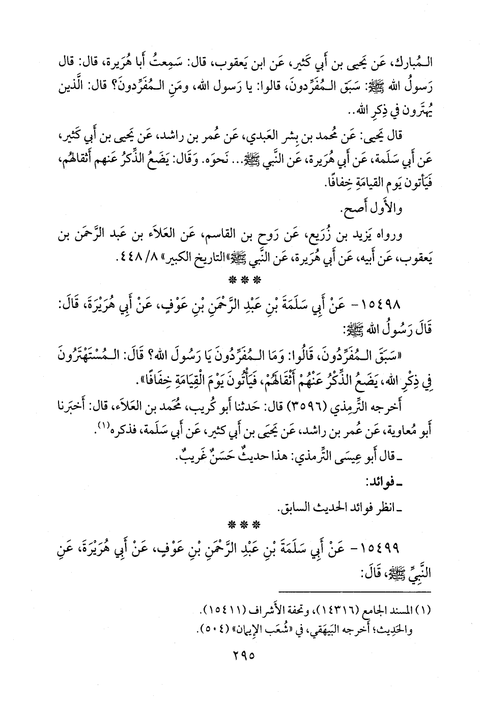 ١٥٤٩٩ - عن أبي سلمة بن عبد الرَّحمَن بن عوف، عن أبي هريرة، عن النبي صَلى الله عَليه وسَلم قال: