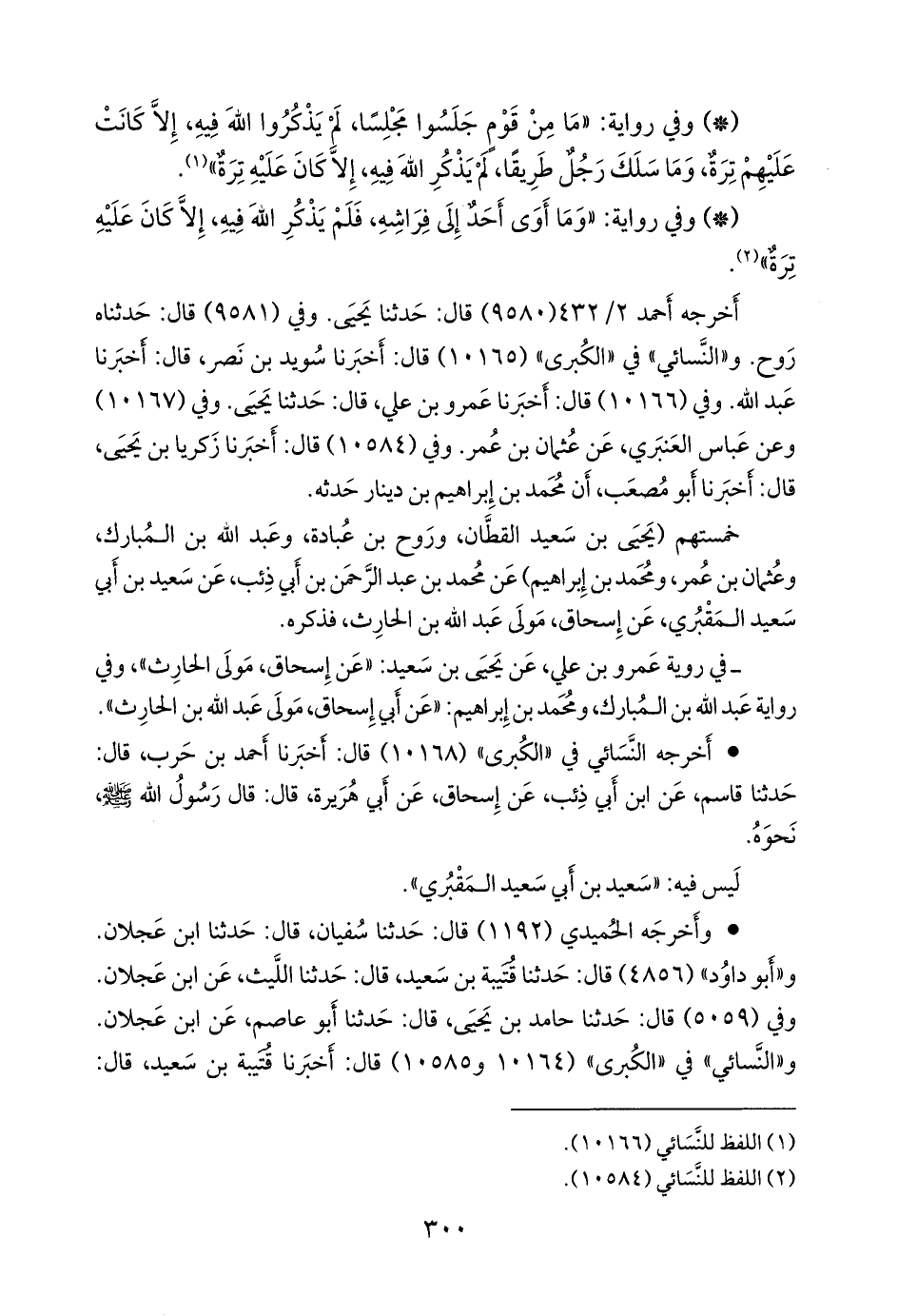 - في روية عَمرو بن علي، عن يحيى بن سعيد: «عن إسحاق مولى الحارث»، وفي رواية عبد الله بن المبارك، ومحمد بن إبراهيم: «عن أبي إسحاق مولى عبد الله بن الحارث».